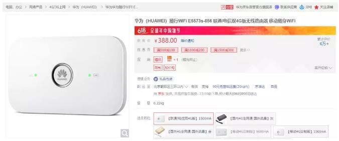 2、还得是新户,消费满5000元,送华为的移动WiFi,型号E5573S-856,名额6000份。