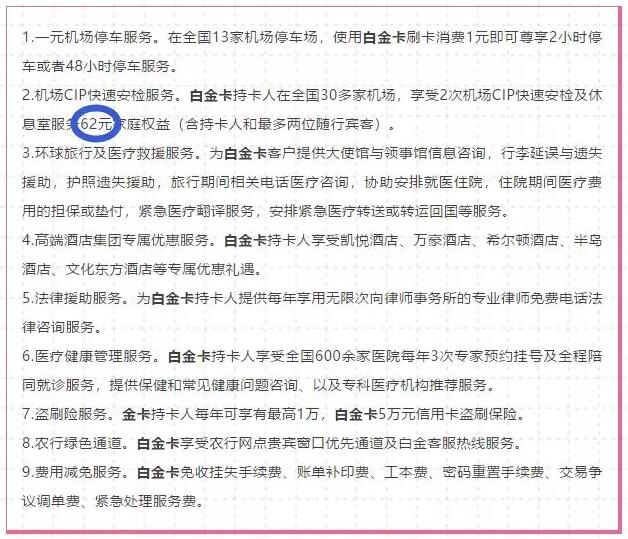 就是银联搞的白金卡62元CIP套餐,跟农行没啥关系。