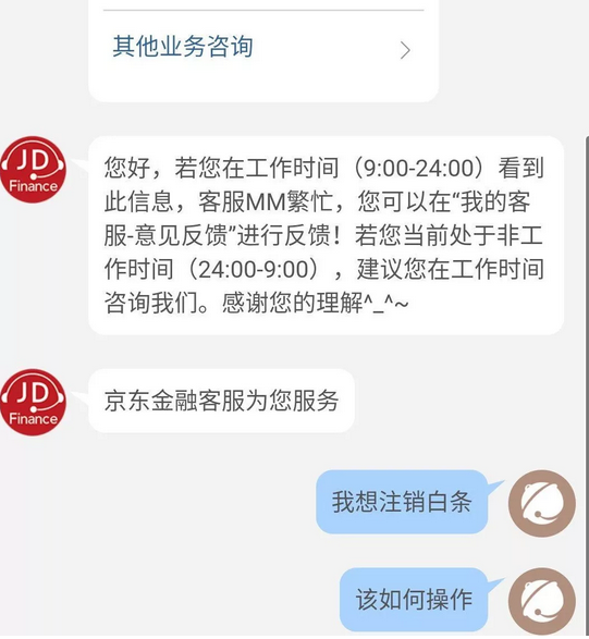 如果需要注销白条,可登录京东金融首页,然后右上角选择“我的客服”并输入 “人工服务”,向客服说明需注销并提供账号、手机号等相关信息,客服就会做登记。等接到客服来电后再次告知需要注销即可。现在各个群都在火热排队注销中。。。。